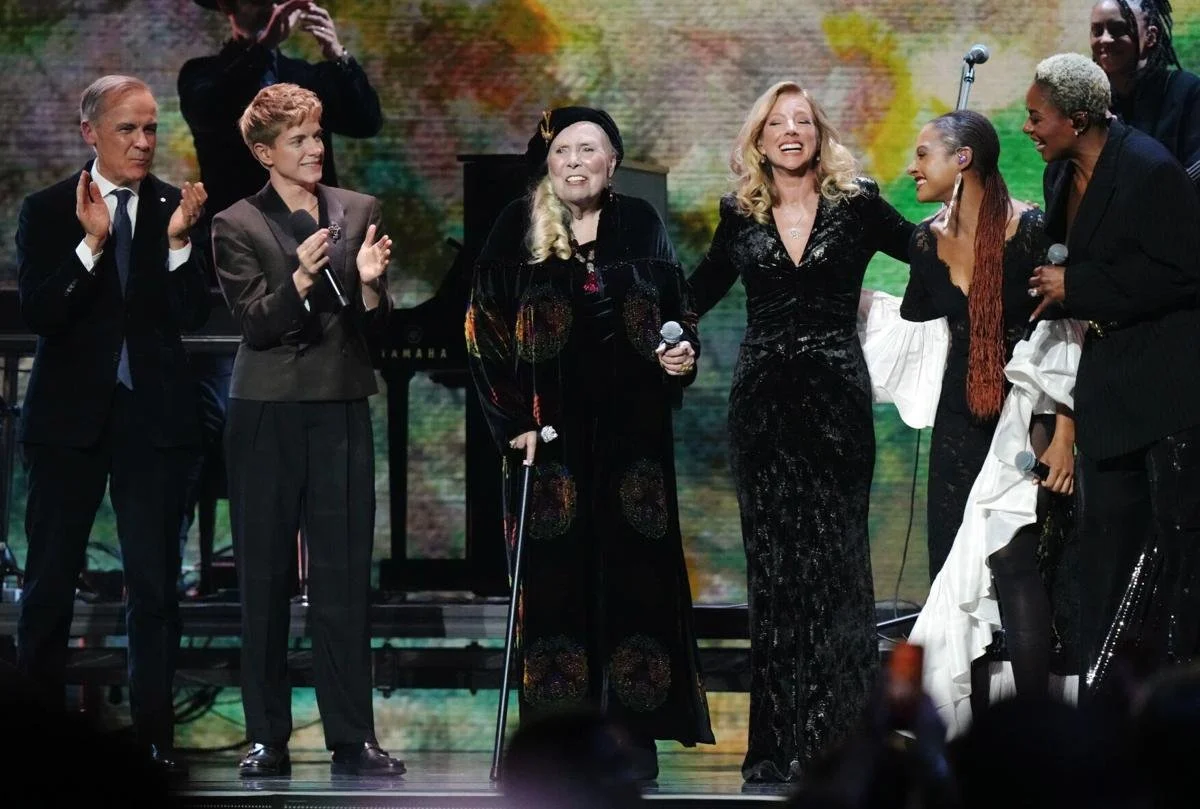 The ceremony’s deepest emotional weight came from Joni Mitchell, who received the Lifetime Achievement Award in a rare Canadian public appearance. During her speech, Mitchell reflected on the aftermath of her 2015 aneurysm and described how the experience changed her life in unexpected ways. The tribute segment around her gave the evening a kind of hushed reverence: Sarah McLachlan and Allison Russell helped lead a medley of Mitchell songs before Mitchell joined in for “Big Yellow Taxi.” It was the kind of moment that briefly suspended the usual award-show machinery and replaced it with something far more human.